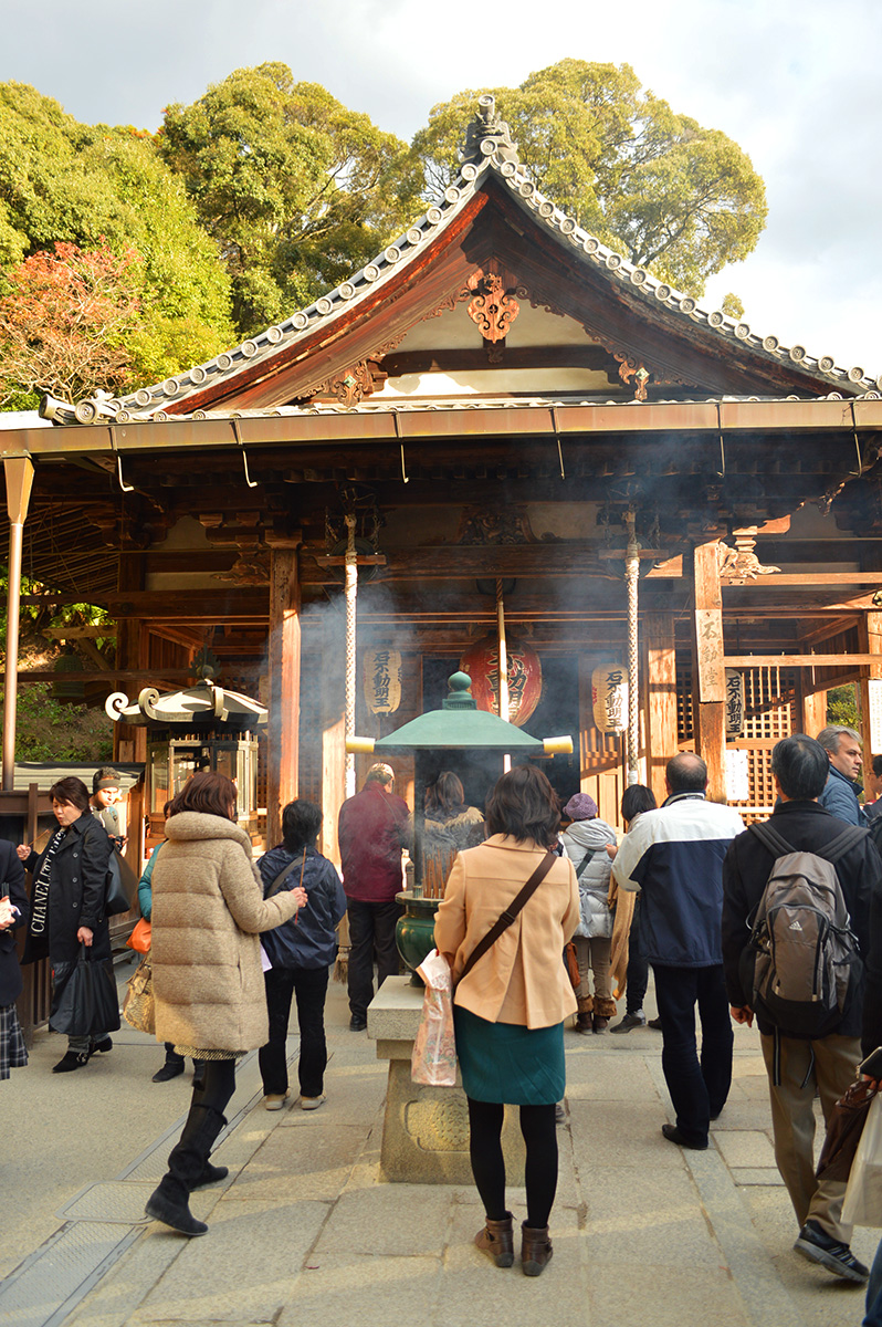 A la fin de la visite il y a une maison de thé où l’on peut en déguster, des petites boutiques de souvenirs, et des endroits de recueillement où de l’encens est allumé et où on peut taper sur des « gongs » après avoir jeté une petite pièce.
