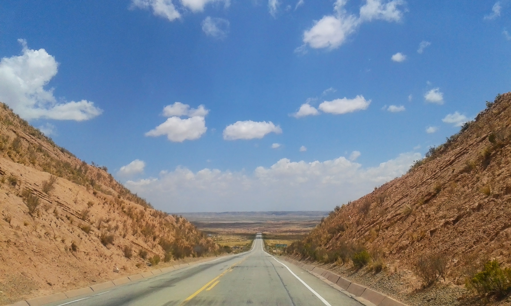 Nous quittons tout d’abord La Paz avec un bus direction Oruro. Celui-ci n’est pas hyper pressé, alors que nous, un peu, on ne voudrait pas louper le seul colectivo qui va à Sajama, notre destination finale 😅 On informe le chauffeur de nous laisser à Patacamaya. Il nous dépose sur la grande route, c’est totalement désert !