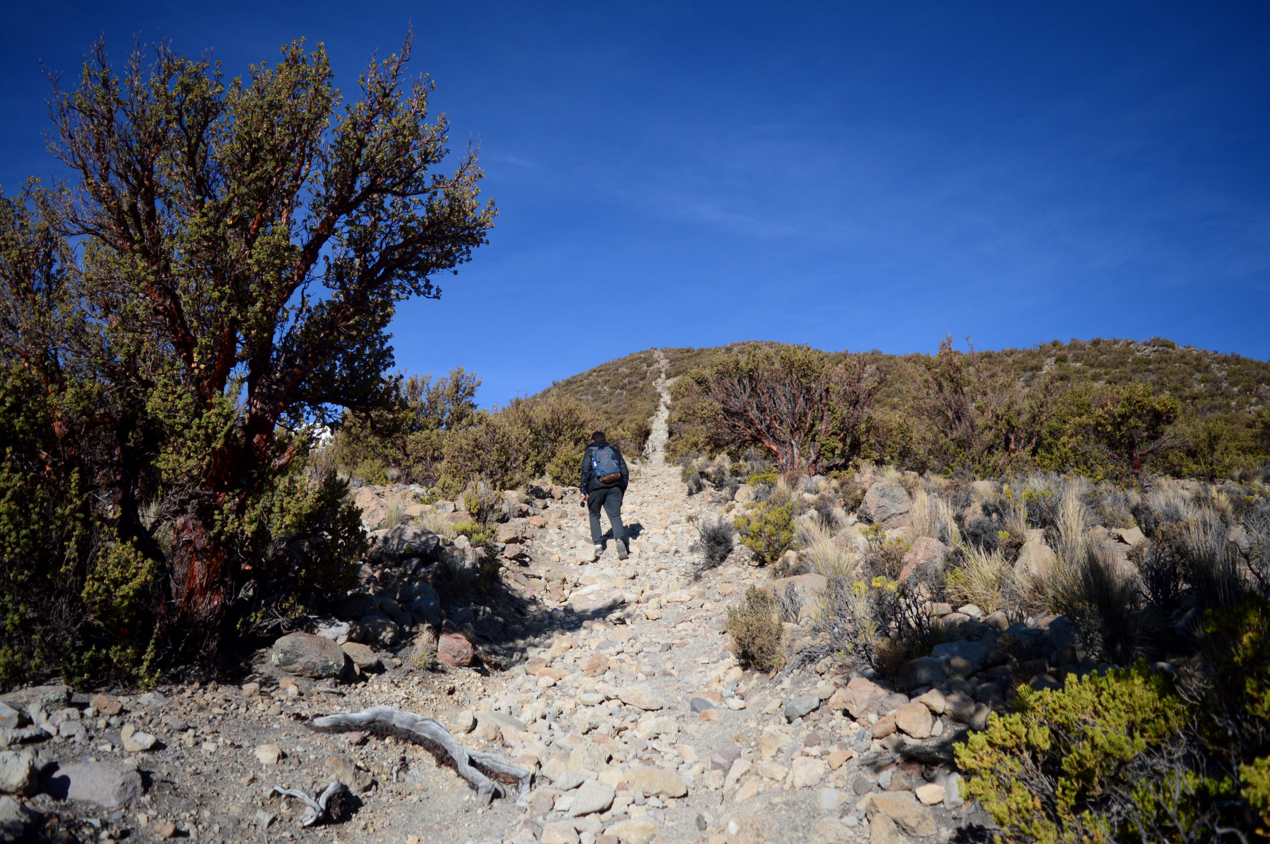 Nous ne tardons pas et partons pour une « petite » rando, pas très loin, pour monter jusqu’au mirador Monte Cielo. En fait il nous faut quand même 1 h 15 depuis le village de Sajama pour aller au point de vue, car ça grimpe pas mal et à cette altitude, la fatigue se ressent rapidement.
