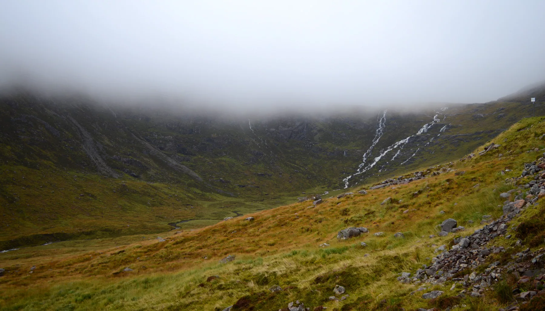 Nous passons ensuite près du loch Torridon et dans la réserve naturelle protégée de Beinn Eighe (où, si l’on est chanceux, on peut croiser des cerfs). Malheureusement cette journée est placée sous le signe de la pluie. Nous nous arrêtons donc à certains endroits mais n’entamons pas de vraies randonnées.
