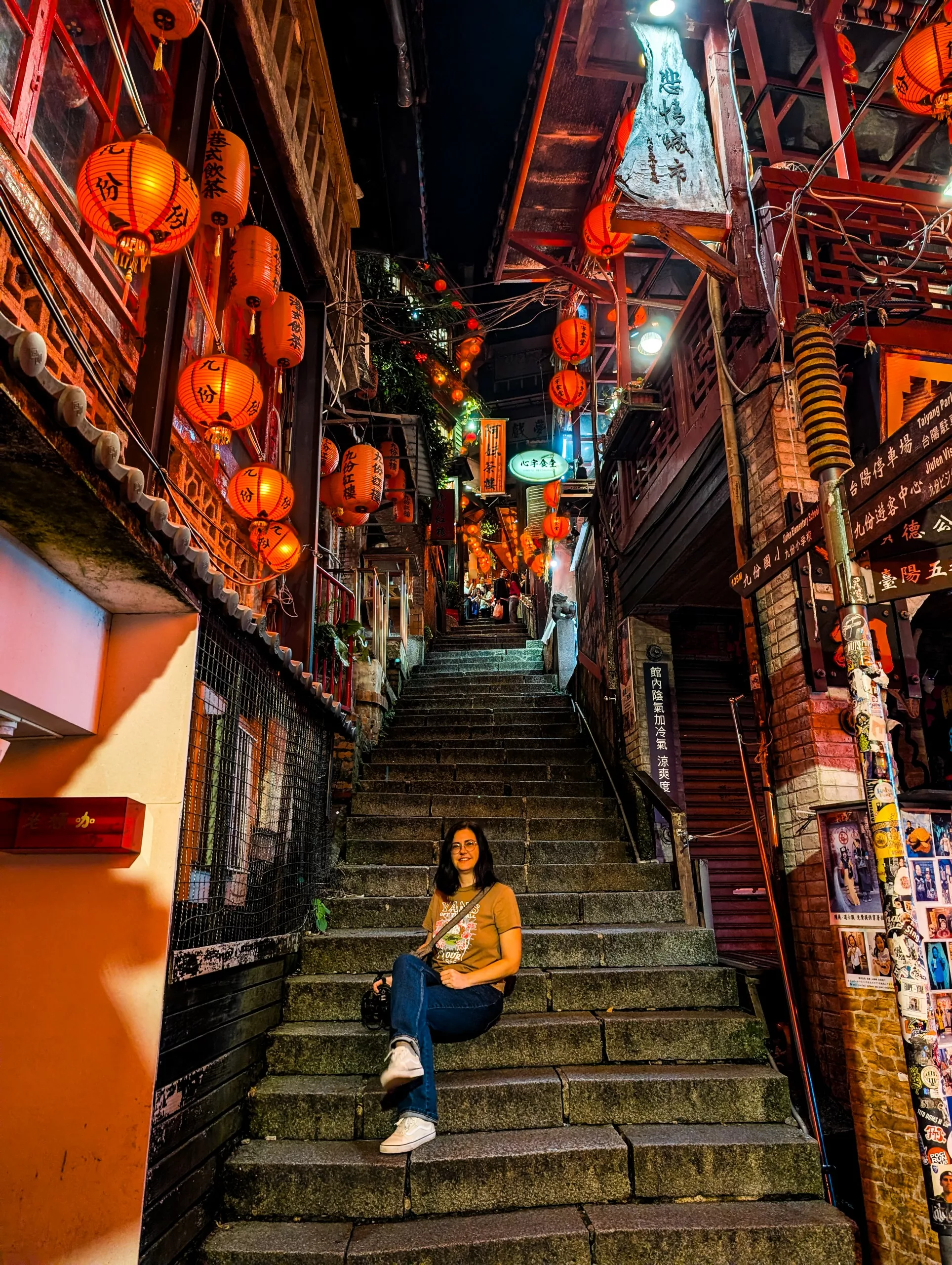 Puis, le soir, les derniers bus ramènent tout le monde et il n’y a presque plus personne à Jiufen ! Pour exemple, nous sommes partis manger dans une petite rue adjacente vers 19 h 30, il y avait encore énormément de monde. Une heure plus tard, c’était vide ! Le contraste était vraiment impressionnant. On a donc pu profiter tranquillement du lieu, dans le calme, et ça, c’était top. Par contre il faut garder à l’esprit que la majorité des restos ferment assez tôt et surtout les lanternes qui rendent l’endroit magique s’éteignent vers 21 h 30. Ça ne laisse pas beaucoup de temps pour en profiter en paix, mais c’est déjà ça.