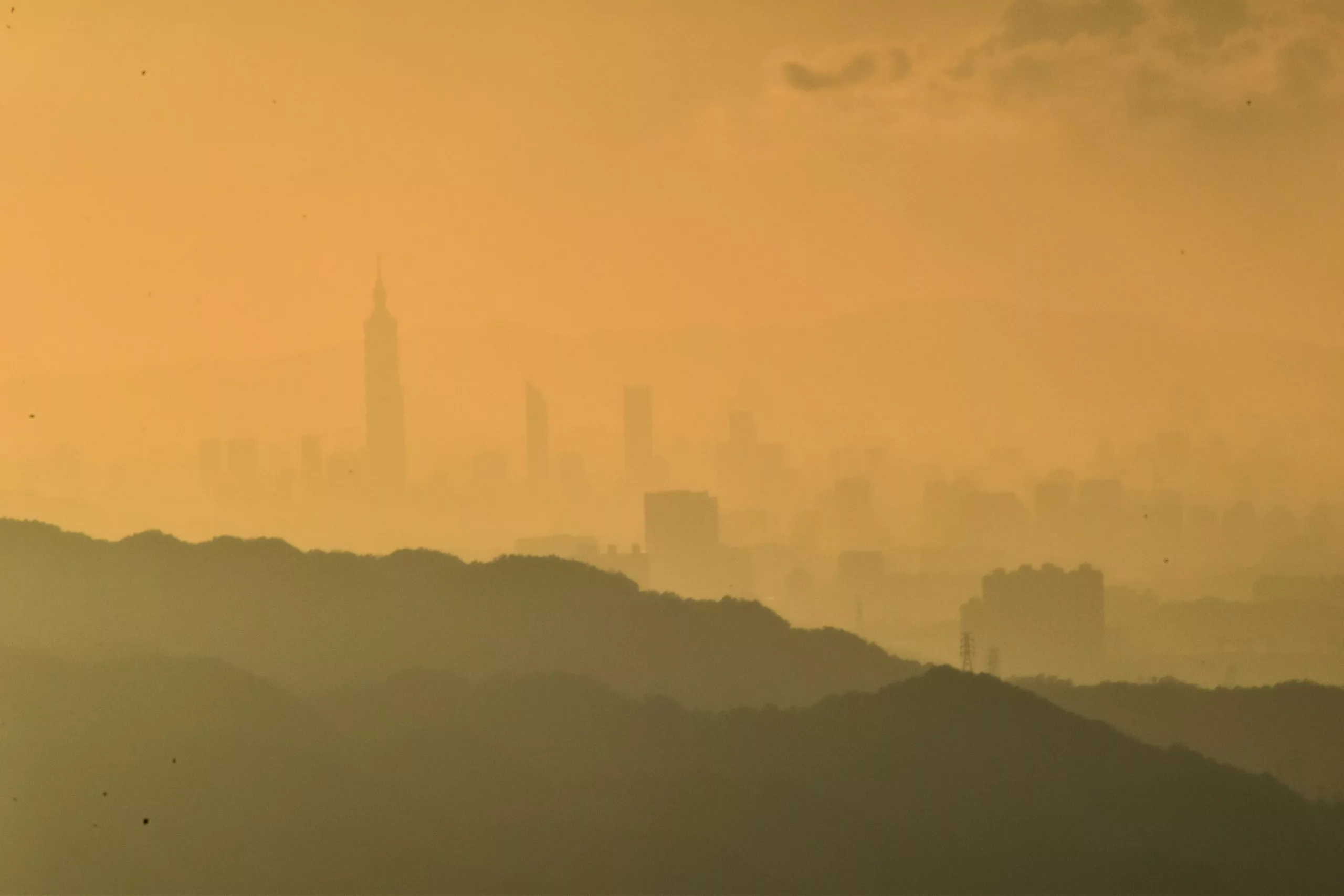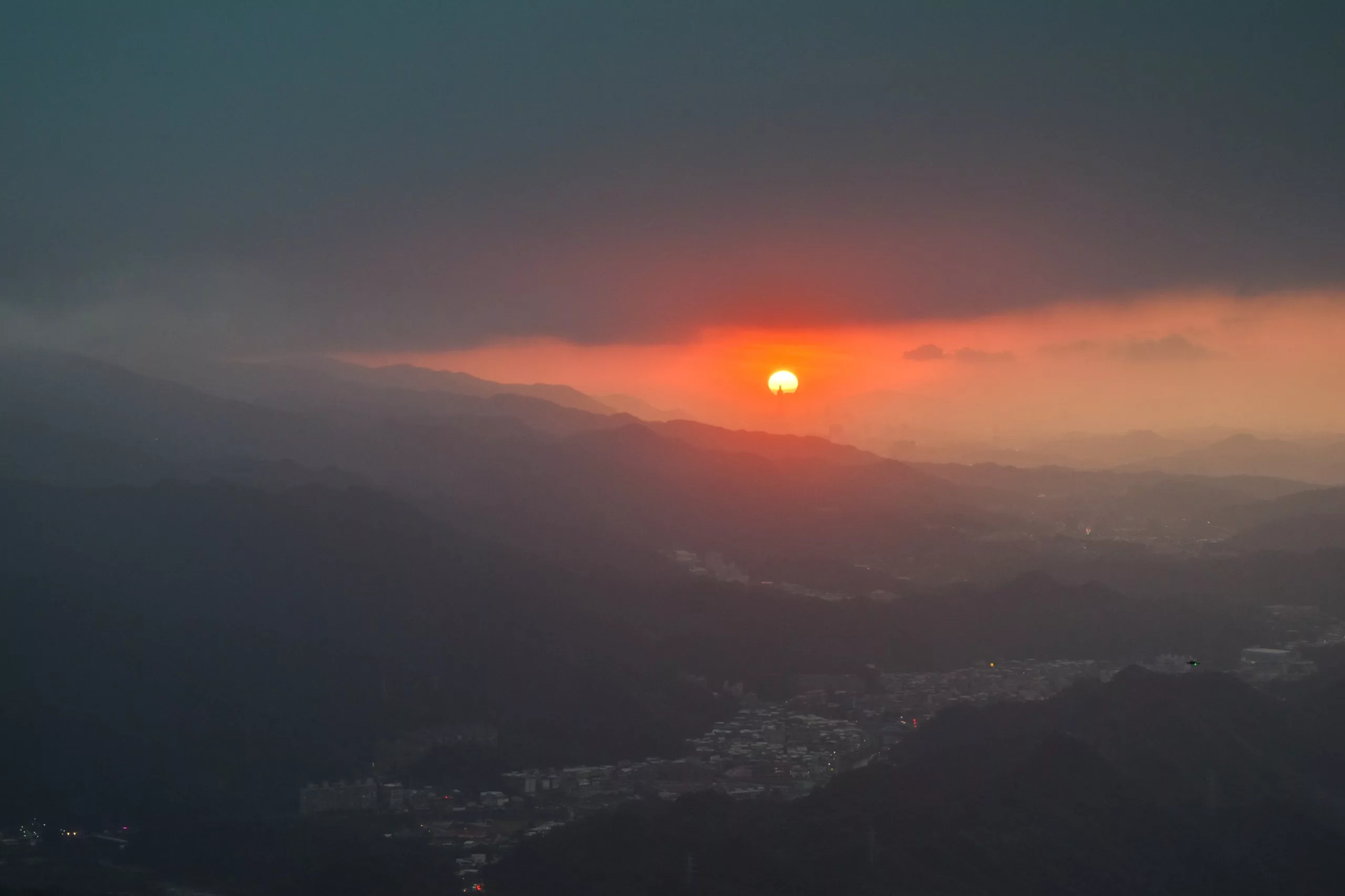 Ici la vue est bien dégagée. Nous sommes là pour le coucher de soleil (il est tôt : 17 h 15 au mois de novembre). C’est superbe et nous avons droit à une vision incroyable : les buildings de Taipei au loin ! La tour Tapei 101 (où nous sommes montés la veille !) se démarque des autres par sa hauteur (500 m). C’est vraiment fou de voir ces gratte-ciels alors que nous sommes à des kilomètres. Je ne sais pas si ce spectacle est visible régulièrement ou si nous avons eu de la chance.