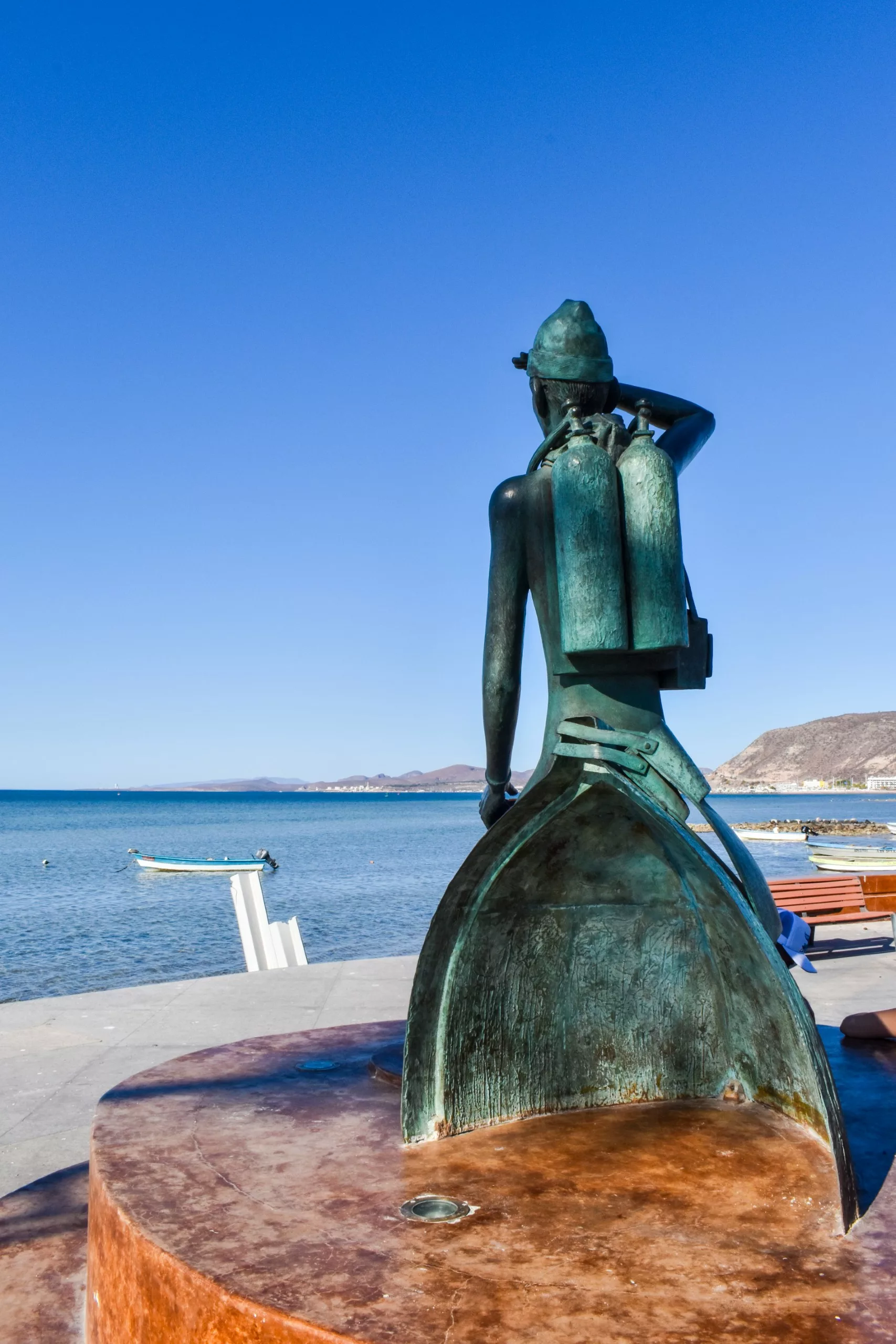 Notre première impression de La Paz se fait sur le Malecon, la promenade en bord de mer. On est tout de suite charmé ! L’ambiance est très tranquille, rien à voir avec Puerto Vallarta d’où nous venons (qui est une énorme ville balnéaire ultra touristique). Ici, pas de grands buildings, de centres commerciaux ou de restos américains, mais principalement des petits commerces. C’est très agréable d’y flâner, il y a de nombreuses sculptures tout le long (notamment une du commandant Cousteau !).