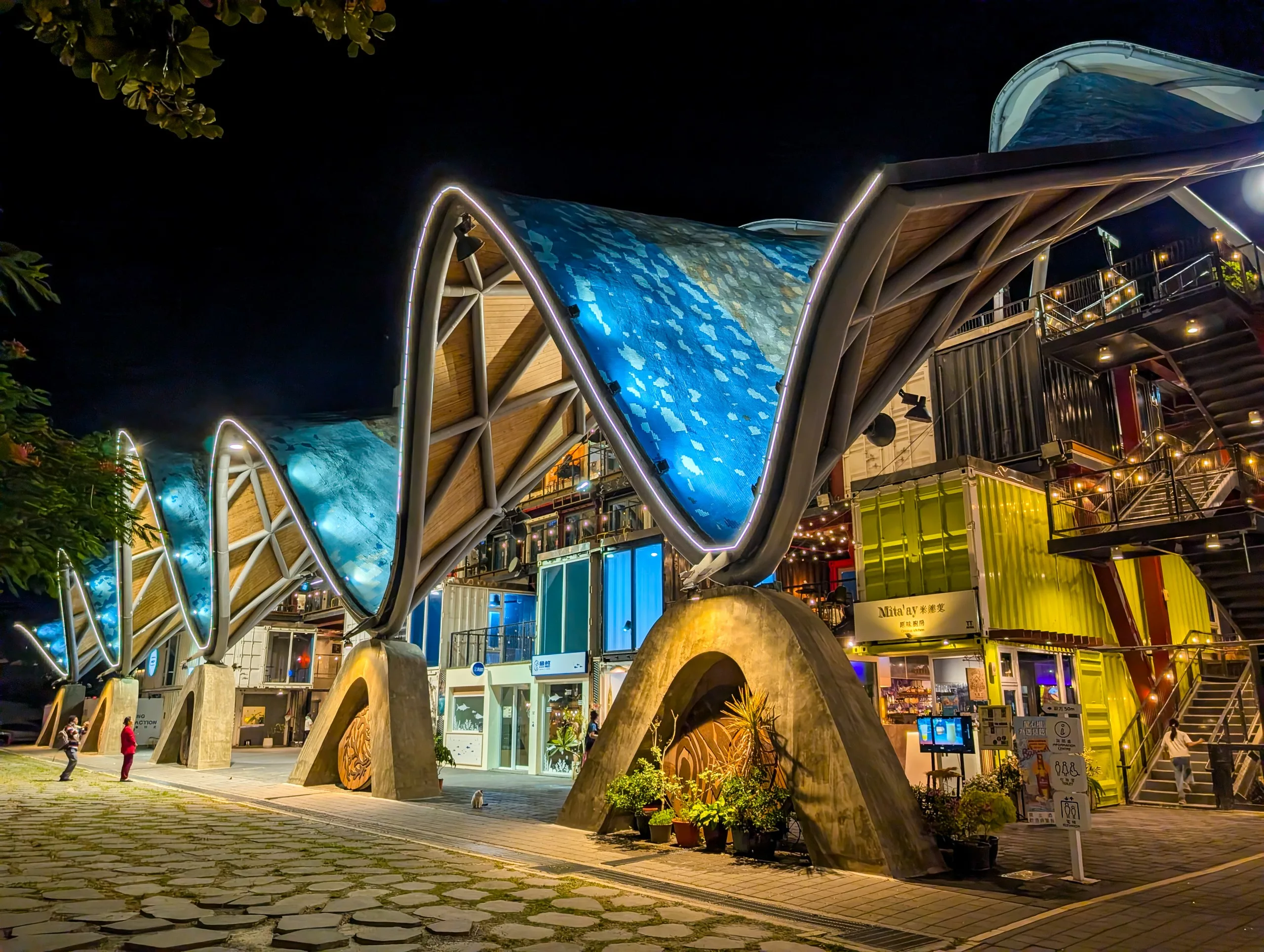 Taitung est une ville plutôt boudée par les touristes, nous n’avons pas trouvé beaucoup d’infos à son propos. Nous y étions au moment où un typhon passait près de Taïwan, donc nous n’avons pas trop exploré la ville. Notre très bel hôtel était néanmoins à côté du Tiehua Music Village, qui fut notre QG durant notre séjour à Taitung. Le soir, du mercredi au dimanche, s’y trouve un marché d’artisans et de street-food avec des concerts. Un endroit super sympa et mignon !